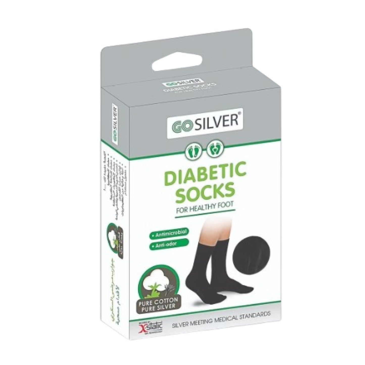 Go Silver Diabetic Socks in Black, Size 35/38, offer specialized comfort and support for individuals with diabetes. These socks are made with silver, which has natural properties to help improve blood flow and reduce the risk of infection. Keep your feet healthy and comfortable with these scientifically-designed socks.