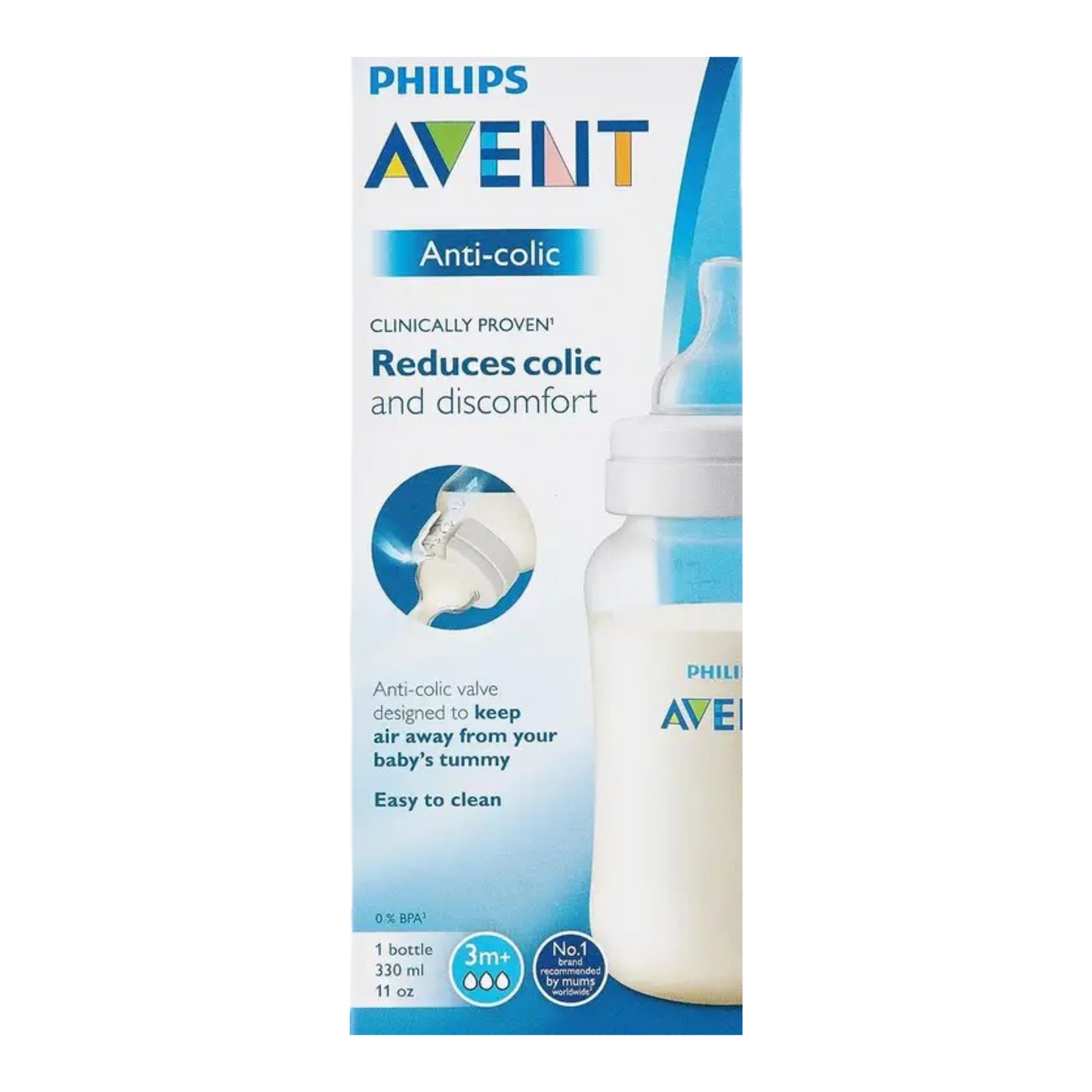 Introducing the PHILIPS AVENT Anti-Colic Bottle! With its 330ml capacity, it can easily hold enough milk for your little one's hunger. Featuring an anti-colic valve, it reduces discomfort and fussiness during feeding. Trust in our domain expertise and give your baby the best.