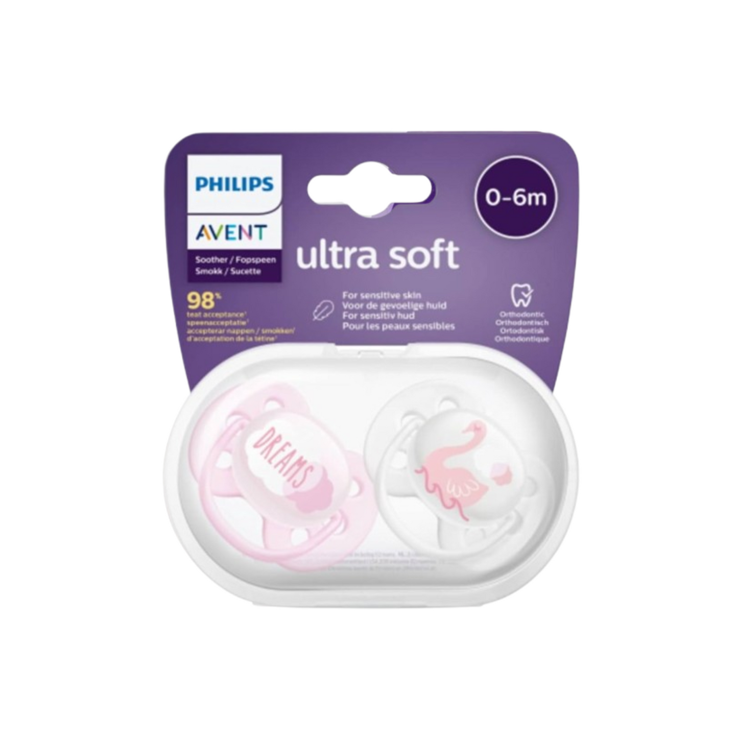 Experience ultimate comfort for your baby with Philips Avent Soft Silicone Pacifier for girls, designed for ages 0-6 months. The soft silicone soothes and encourages natural development while the stylish design completes any outfit. Made with trusted Philips quality, it's the perfect pacifier for your little one.